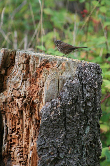 This looks like a song sparrow, but it was too busy eating seeds to sing for us :